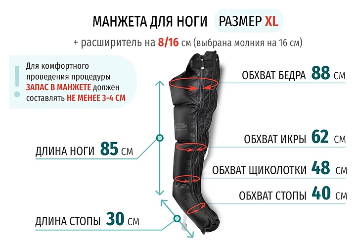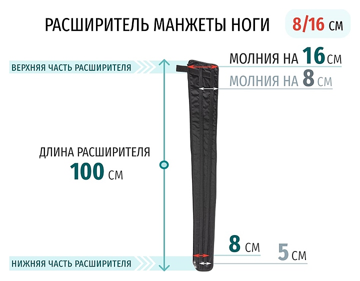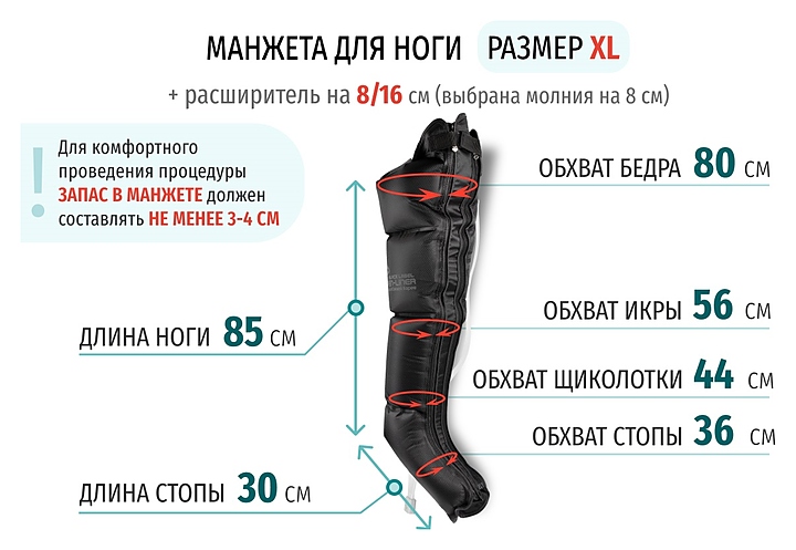 Расширители Welbutech Seven Liner (Zam-01) 10595 предназначены для увеличения размера манжет для ног, используемых вместе с лимфодренажными аппаратами Welbutech Seven Liner Zam-01 при проведении процедур комплексной оздоровительной пневмо-компрессионной массажной терапии. Модель оснащена молниями и липучками. Расширители изготовлены из прочной износостойкой антибактериальной ткани. Дополнительные характеристики: