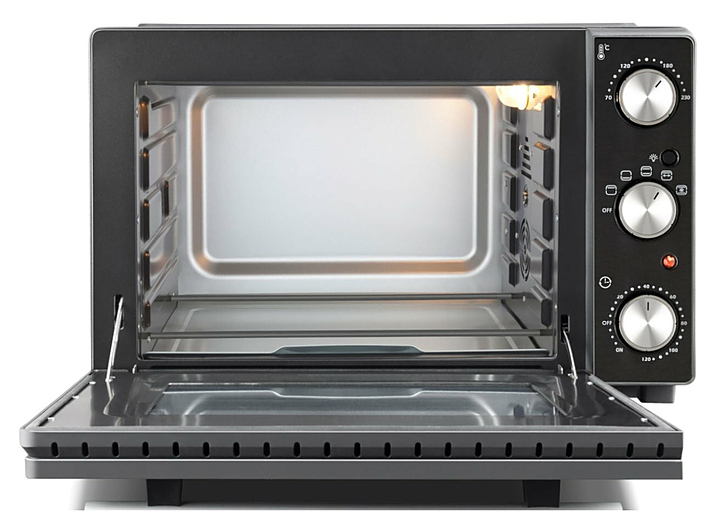 Мини-печь CASO TO 32 Classic предназначена для приготовления и разогрева различных блюд, выпечки кондитерских и хлебобулочных изделий в квартирах, частных домах, кафе и ресторанах. Модель оснащена механическим управлением, внутренней подсветкой и дверцей с двойным остеклением. Корпус выполнен из металла, нагревательные элементы - из нержавеющей стали, внутренняя камера - из нержавеющей стали с антипригарным покрытием. В комплект поставки входят решетка для гриля, моторизированный вертел, противень с антипригарным покрытием, ручка для решетки и вертела, камень для пиццы и съемный поддон для крошек из нержавеющей стали. Особенности: