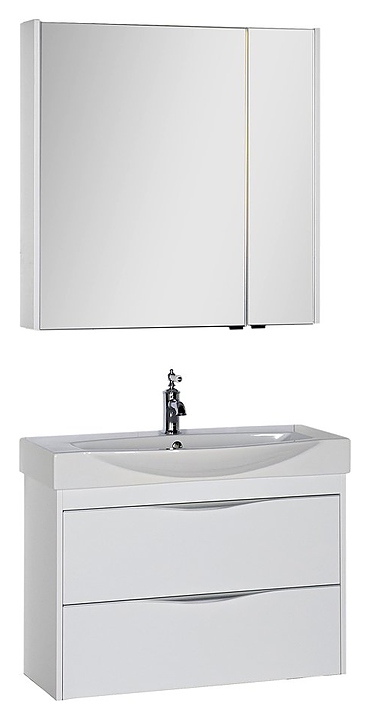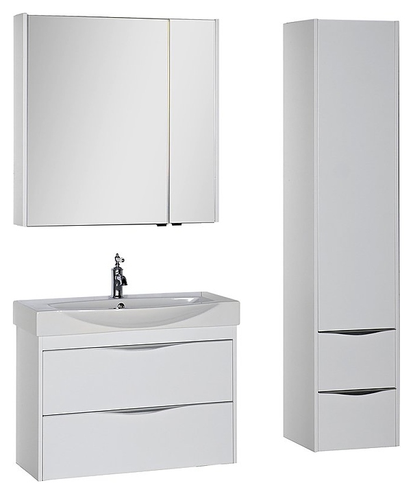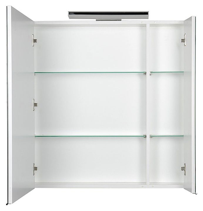 Зеркальный шкаф Aquanet Франка 85 дополнит интерьер ванной комнаты. За счет подвесной конструкции изделие позволяет экономить пространство в ванной комнате и облегчает уборку. Модель оснащена 2 распашными дверцами и 2 стеклянными полками в каждом отделении. Корпус изделия выполнен из влагостойкой ЛДСП, а фасад из МДФ и покрыт глянцевой краской. Светильник в комплект поставки не входит и приобретается отдельно. Дополнительные характеристики:
