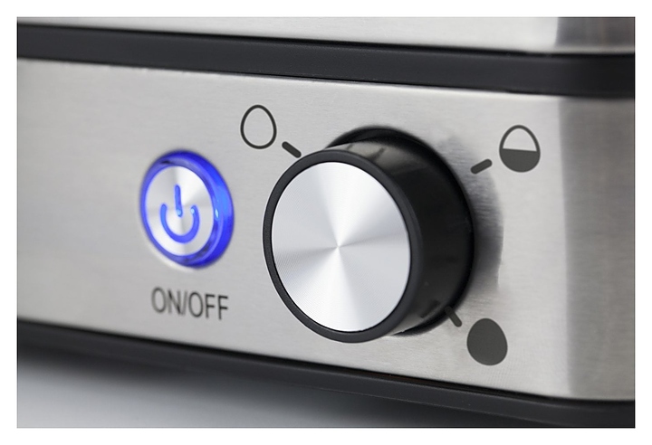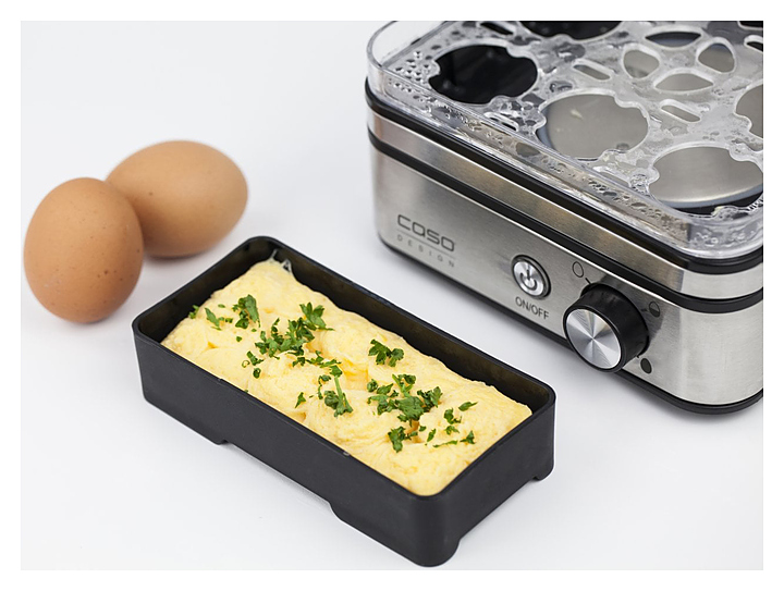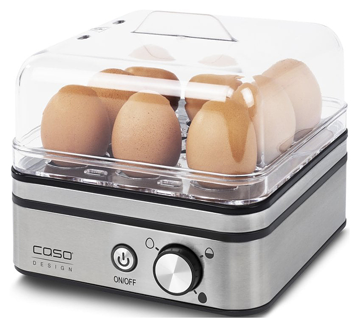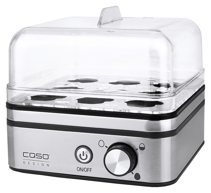 Яйцеварка CASO E9 используется в частных домах, квартирах, отелях и офисах для приготовления куриных яиц до выбранной степени готовности. Модель оснащена поворотным регулятором времени варки, светодиодным индикатором работы и прозрачной крышкой с отверстием для выпуска пара. Корпус выполнен из нержавеющей стали, крышка - из пластика, варочная емкость - с антипригарным покрытием. В комплект поставки входят мерный стакан с приспособлением для накалывания яиц, съемная подставка для яиц и 2 емкости для приготовления яиц пашот. Особенности: