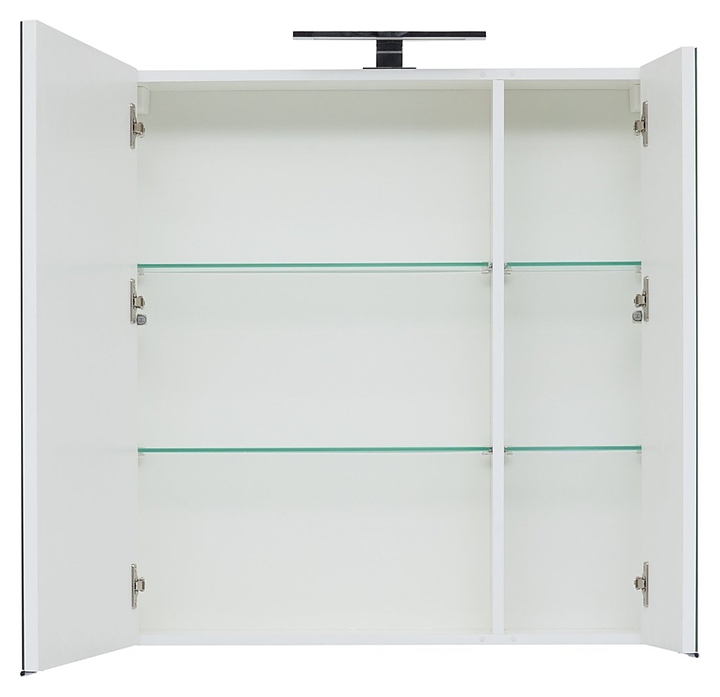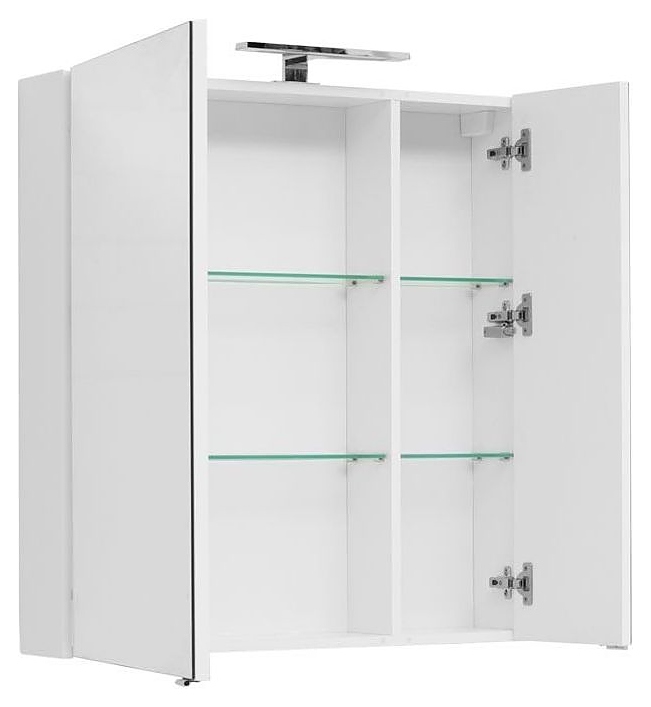 Зеркальный шкаф Aquanet Орлеан 75 дополнит интерьер ванной комнаты. За счет подвесной конструкции изделие позволяет экономить пространство в ванной комнате и облегчает уборку. Модель оснащена 2 распашными дверцами и 2 стеклянными полками в каждом отделении. Корпус изделия выполнен из влагостойкой ЛДСП, а фасад из МДФ и покрыт глянцевой краской. Светильник в комплект поставки не входит и приобретается отдельно. Особенности: