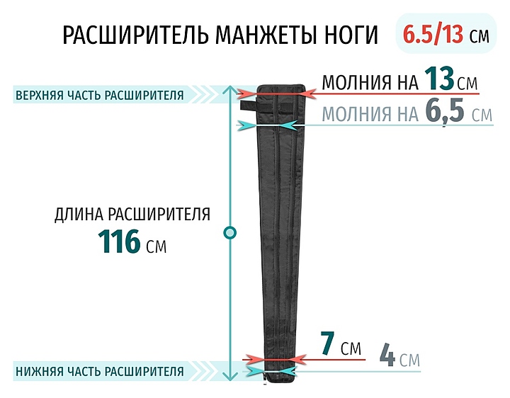 Расширители Welbutech Seven Liner (Z-Sport) 10795 предназначены для увеличения размера манжет для ног, используемых вместе с лимфодренажными аппаратами Welbutech Seven Liner Luxury Z-Sport при проведении процедур комплексной оздоровительной пневмо-компрессионной массажной терапии. Модель оснащена молниями и липучками. Расширители изготовлены из прочной износостойкой антибактериальной ткани. Дополнительные характеристики: