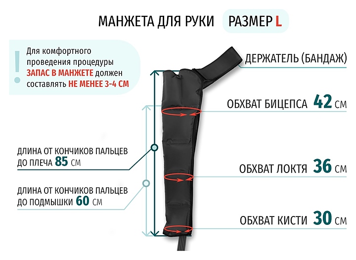 Манжета для руки Gapo Alance Black 10857 используется вместе с лимфодренажными аппаратами Gapo Alance Black для проведения процедур комплексной оздоровительной пневмо-компрессионной массажной терапии. Модель оснащена удобной лямкой, молнией, липучкой и скрытыми встроенными шлангами с разъемом для подключения к аппарату. Манжета изготовлена из прочной износостойкой водонепроницаемой ткани, шланги – из качественного силикона. Дополнительные характеристики: