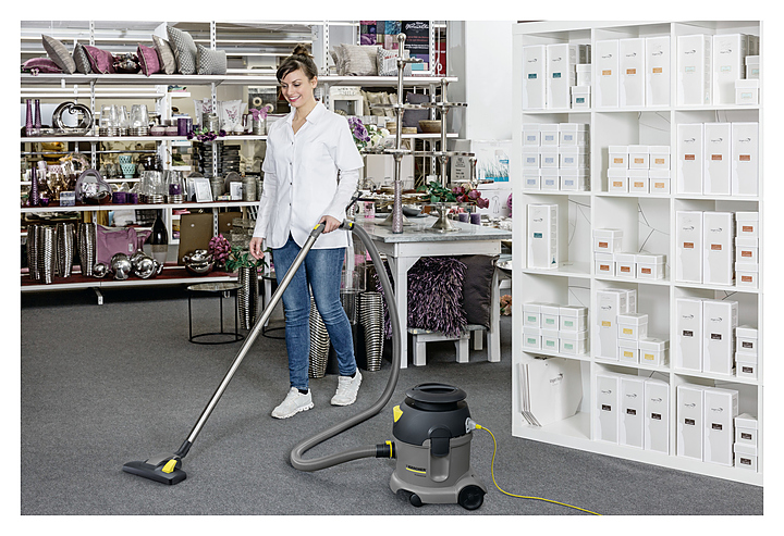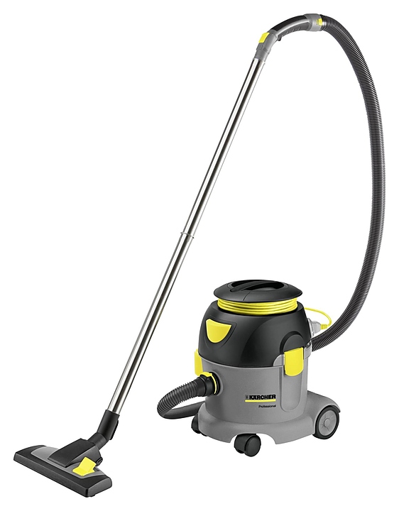 Профессиональный хозяйственный пылесос Karcher T 10/1 Adv HEPA предназначен для сухой уборки любых типов твердых и текстильных напольных покрытий, мягкой мебели в помещениях офисов, гостиниц, кинотеатров, торговых центров, предприятий общественного питания и других отраслей, а также в домашних условиях. Модель оснащена удобной рукоятью с регулятором мощности, съемным кабелем питания и устойчивым четырехколесным шасси. Корпус и насадки изготовлены из ударопрочного пластика, удлинительные трубки – из хромированного металла, корзинный фильтр и фильтр-мешок – из нетканого материала. Комплектация: