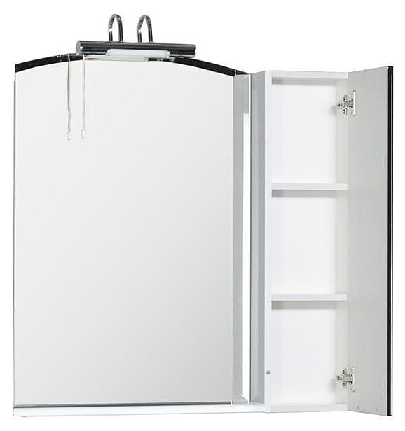 Зеркало Aquanet Асти 85 от российского бренда дополнит интерьер ванной комнаты. Благодаря подвесной конструкции модель не занимает много места, что позволяет экономить пространство, а также облегчает уборку. Зеркало оснащено полкой и 1 шкафчиком с распашной дверцей и полкой. Корпус изделия выполнен из влагостойкой ЛДСП, а корпус из МДФ с покрытием глянцевой краской. Светильник в комплект поставки не входит и приобретается отдельно. Особенности: