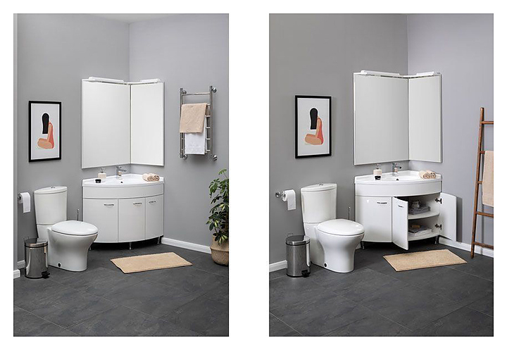 Зеркало Aquanet Корнер 88 R от российского бренда дополнит интерьер ванной комнаты. Благодаря угловой подвесной конструкции модель не занимает много места и заполняет свободный угол, что позволяет экономить пространство. Зеркало оснащено встроенными светильниками и розеткой. Корпус изделия выполнен из влагостойкой ЛДСП, а фасад из МДФ покрыт глянцевой краской. Особенности: