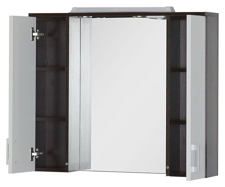 Зеркало Aquanet Тиана 90 от российского бренда дополнит интерьер ванной комнаты. Благодаря подвесной конструкции модель не занимает много места, что позволяет экономить пространство, а также облегчает уборку. Зеркало оснащено светодиодной подсветкой и 2 шкафчиками с распашными дверцами. Корпус изделия выполнен из влагостойкой ЛДСП, а фасад из МДФ покрыт глянцевой краской. Дополнительные характеристики: