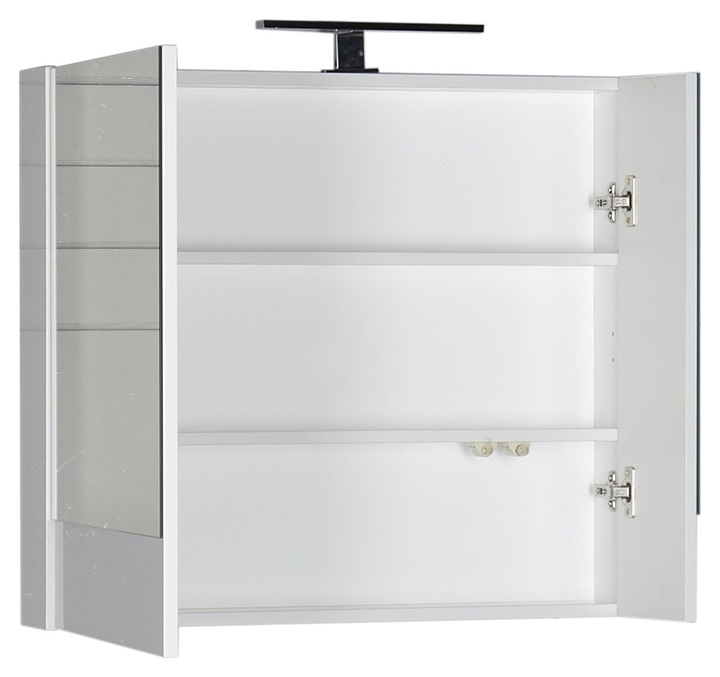 Зеркальный шкаф Aquanet Нота 75 дополнит интерьер ванной комнаты. За счет подвесной конструкции изделие позволяет экономить пространство в ванной комнате и облегчает уборку. Модель оснащена 2 распашными дверцами и 2 полками. Изделие выполнено из влагостойкой ЛДСП. Светильник в комплект поставки не входит и приобретается отдельно. Особенности: