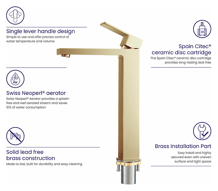 Смеситель для раковины-чаши TIMO Selene 3011/17F золото матовое
