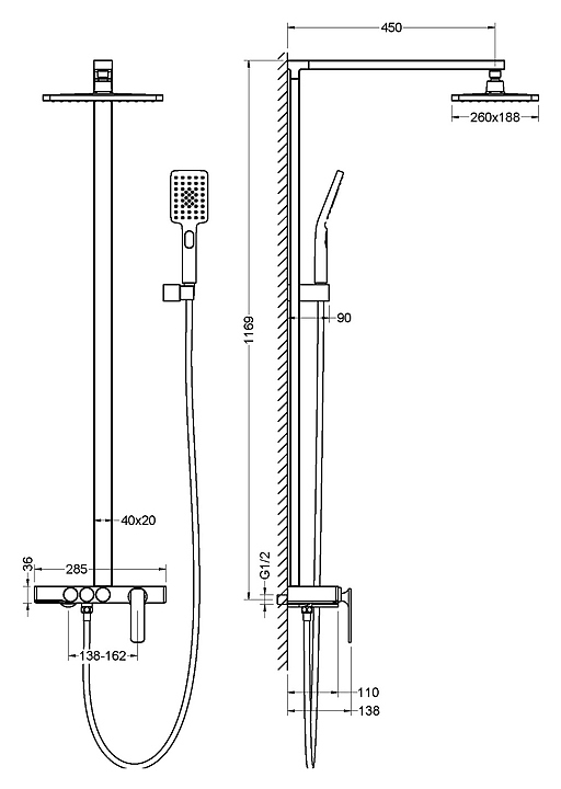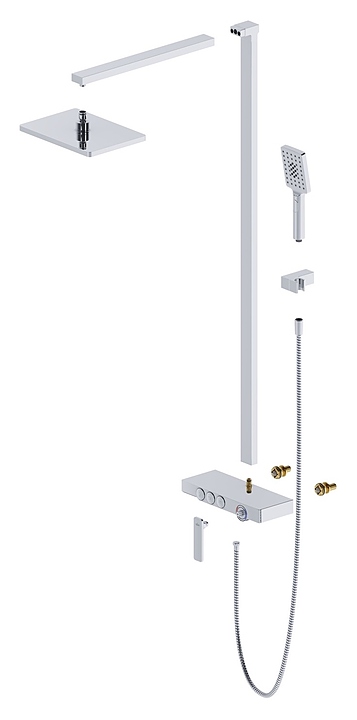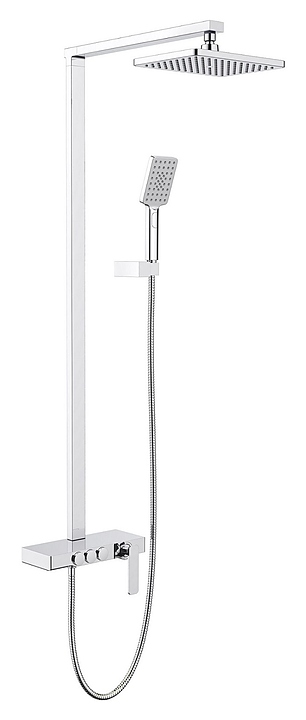 Душевая стойка TIMO Torne SX-4310/00 предназначена для использования в ванных помещениях. Серия выполнена в стиле модерн. Модель оснащена встроенным изливом, однорежимной ручной лейкой, квадратным верхним душем "Тропический дождь", душевым шлангом и держателем для ручной лейки. Изделие выполнено из высококачественной латуни, отличающейся прочностью, долговечностью и устойчивостью к перепадам температур. В комплект поставки входят смеситель с встроенным изливом, штанга тропического душа, тропический душ, ручная лейка, шланг, эксцентриковые соединители, декоративные отражатели, держатель для лейки и крепеж к стене. Особенности: