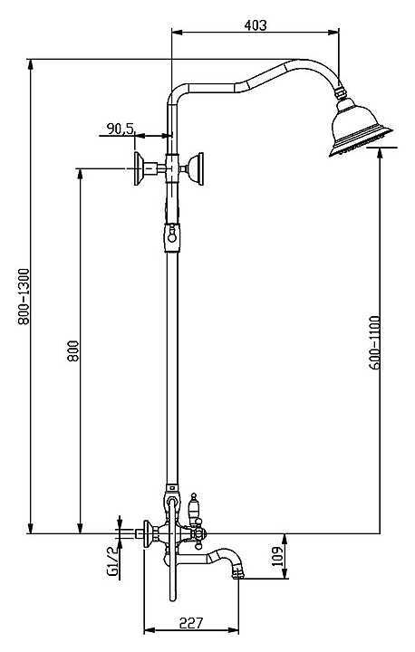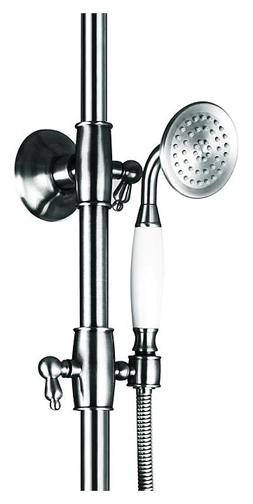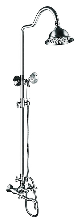 Душевая стойка TIMO Nelson SX-1290/00 предназначена для использования в ванных помещениях. Серия выполнена в стиле ретро. Модель оснащена поворотным изливом, однорежимной ручной лейкой, круглым верхним душем "Тропический дождь", душевым шлангом и держателем для ручной лейки. Изделие выполнено из высококачественной латуни, отличающейся прочностью, долговечностью и устойчивостью к перепадам температур. В комплект поставки входят смеситель с поворотным изливом, выдвижная штанга тропического душа, держатель ручной лейки, дивертор, тропический душ, латунная ручная лейка, шланг, эксцентриковые соединители, декоративные отражатели и крепеж к стене с отражателем. Особенности: