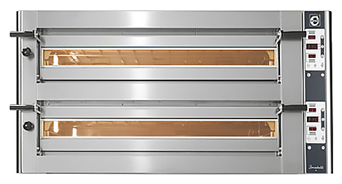 Печь для пиццы Cuppone Donatello DN935/2D используется на предприятиях общественного питания и торговли. Модель оснащена 2 цифровыми панелями управления, дверями с обзорными стеклами и галогеновым освещением камер выпекания. Корпус и камеры выпекания выполнены из нержавеющей стали. Печь используется совместно с вытяжным зонтом Cuppone KDN635AS. Особенности: