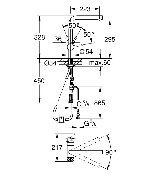 Смеситель для кухни c вытяжным изливом с функцией фильтрации воды Grohe Blue Pure Minta 31721000
