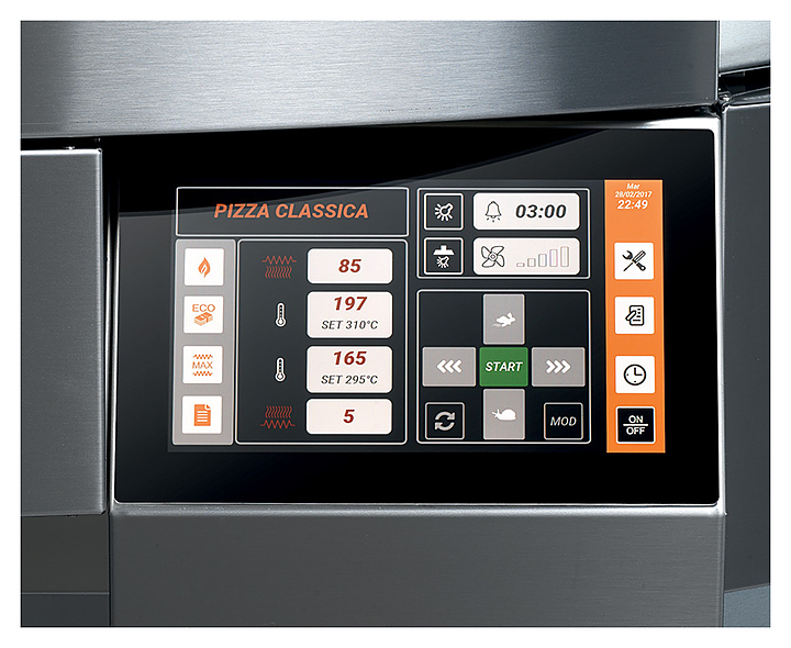 Печь для пиццы Cuppone Giotto GT110/1TS используется на предприятиях общественного питания и торговли. Модель оснащена сенсорной панелью управления, вращающимся подом, дверью с обзорным стеклом и двойным галогеновым освещением камеры выпекания. Корпус выполнен из нержавеющей стали. Особенности:
