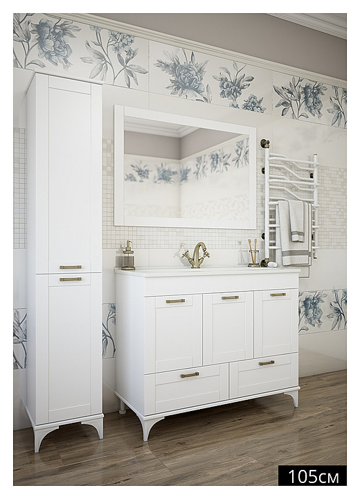Гарнитур Sanflor Ванесса 105 см, 4 предмета, с напольной тумбой, с напольным левост. пеналом, белый