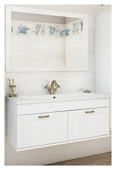 Гарнитур Sanflor Ванесса выполнен в классическом стиле. Благодаря простоте классики и четкости деталей мебель станет украшением любой ванной комнаты. В комплект входит тумба под раковину, раковина Kirovit Оскар 105 и зеркало. Тумба оснащена 2 выдвижными ящиками. Раковина имеет слив-перелив и одно отверстие для смесителя, расположенное по центру. Корпус мебели выполнен из влагостойкой ЛДСП с эмалевым покрытием. Особенности: