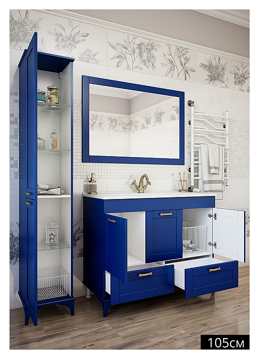 Гарнитур Sanflor Ванесса 105 см, 4 предмета, с напольной тумбой, с напольным левост. пеналом, индиго
