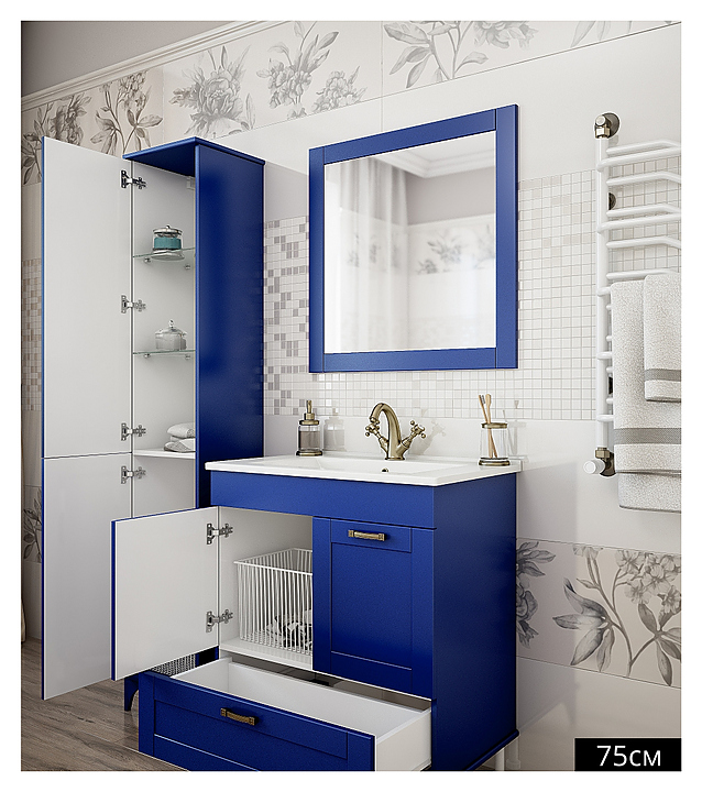Гарнитур Sanflor Ванесса 75 см, 4 предмета, с напольной тумбой, с напольным левост. пеналом, индиго