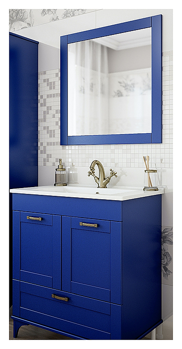 Гарнитур Sanflor Ванесса 75 см, 4 предмета, с подвесной тумбой, с подвесным правост. пеналом, индиго