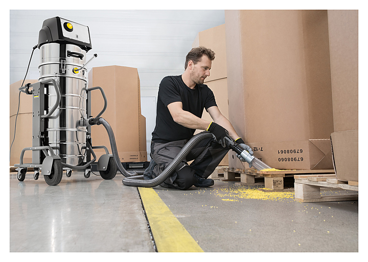 Промышленный пылесос Karcher IVM 60/30 предназначен для влажной и сухой очистки поверхностей полов и стен в складских помещениях и производственных цехах на промышленных предприятиях различных отраслей, в автосервисах, в ходе ремонтно-строительных или реставрационных работ. Модель оснащена всасывающей турбиной с боковым каналом, звездчатым фильтром, поворотным выключателем, удобной рукоятью, держателями для принадлежностей, крюком для шланга и устойчивым четырехколесным шасси. Корпус турбинной головки изготовлен из ударопрочного пластика, контейнер – из нержавеющей стали. Особенности: