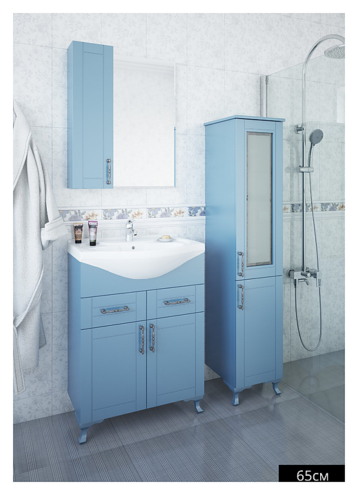 Гарнитур Sanflor Глория 65 см, 4 предмета, с правост. зеркалом, с правост. пеналом, голубой