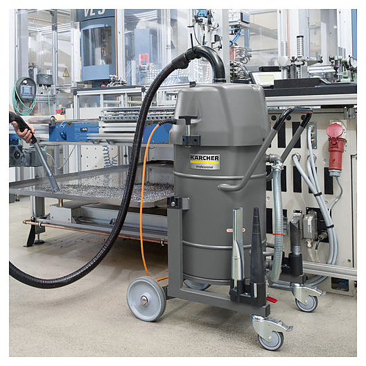 Промышленный пылесос Karcher IVR-L 40/12-1 предназначен для влажной и сухой очистки напольных поверхностей и стен в складских помещениях и производственных цехах на промышленных предприятиях различных отраслей, в автосервисах, сбора стружки и жидкостей в ходе ремонтно-строительных или реставрационных работ. Модель оснащена всасывающей турбиной, поворотным выключателем, удобной ведущей рукоятью, держателями для принадлежностей, крюками для шланга и кабеля и устойчивым четырехколесным шасси. Корпус турбинной головки изготовлен из ударопрочного пластика, контейнер – из металла с эмалированным покрытием. Особенности: