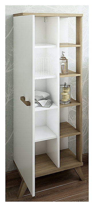 Шкаф-пенал Sanflor Ингрид выполнен в ретро стиле. Благодаря яркому и харизматичному дизайну мебель станет украшением любой ванной комнаты. Модель оснащена 1 дверцей с механизмом плавного закрывания и 5 открытыми полками. Корпус мебели выполнен из ЛДСП с эмалевым покрытием. Шкаф-пенал является частью гарнитура для ванной комнаты Ингрид. Особенности: