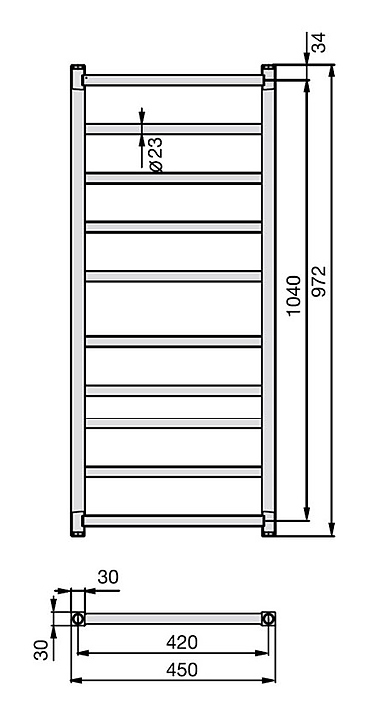 Водяной полотенцесушитель Zehnder Stalox STX-100-045 предназначен для подогрева и сушки полотенец, а также для обогрева ванных комнат в квартирах, коттеджах, частных домах. Модель оснащена 10 перекладинами для удобного использования. Изделие выполнено из нержавеющей стали, отличающейся прочностью, долговечностью и устойчивостью к перепадам температур. Дополнительные характеристики: