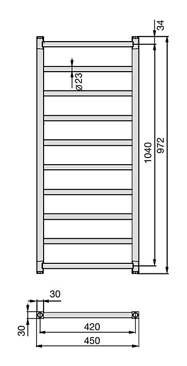 Водяной полотенцесушитель Zehnder Stalox STXI-100-045 предназначен для подогрева и сушки полотенец, а также для обогрева ванных комнат в квартирах, коттеджах, частных домах. Модель оснащена 10 перекладинами для удобного использования. Изделие выполнено из нержавеющей стали, отличающейся прочностью, долговечностью и устойчивостью к перепадам температур. Дополнительные характеристики: