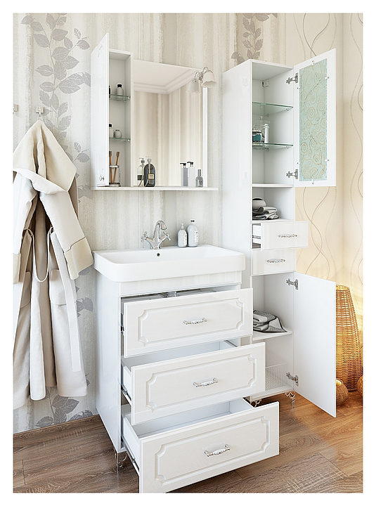 Гарнитур Sanflor Ксения 80 см, 4 предмета, с тумбой на опорах, с правост. пеналом, белый