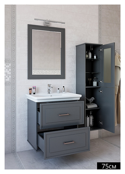 Шкаф-пенал Sanflor Модена выполнен в классическом стиле. Благодаря четким линиям и олицетворению романского стиля мебель станет украшением любой ванной комнаты. Модель оснащена 2 дверцами с механизмом плавного закрывания. Корпус мебели выполнен из влагостойкой ЛДСП с эмалевым покрытием. Шкаф-пенал является частью гарнитура для ванной комнаты Модена. Особенности: