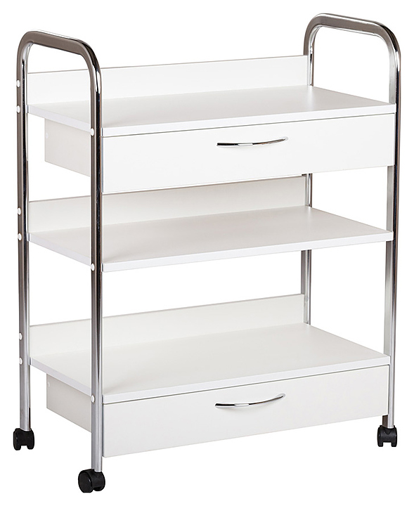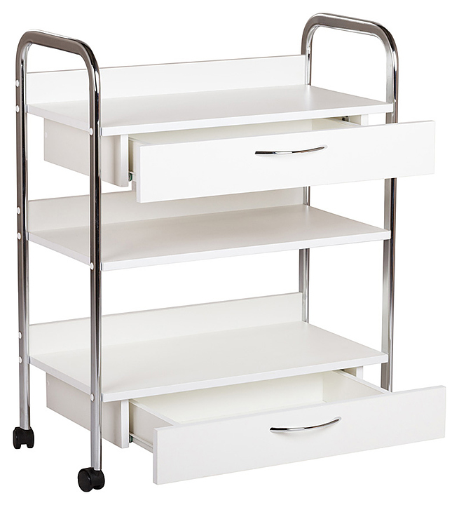 Косметологическая тележка PANDA Ионто II предназначена для хранения косметических средств, рабочих инструментов, приборов и расходных материалов в парикмахерских, барбершопах, салонах красоты и косметологических центрах. Модель оснащена открытыми полками, выдвижными ящиками и устойчивыми ножками на колесах. Каркас тележки изготовлен из металла, полки и ящики - из ЛДСП. Особенности: