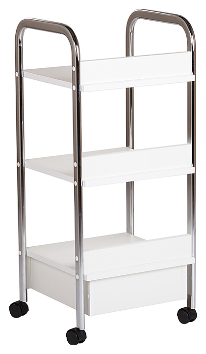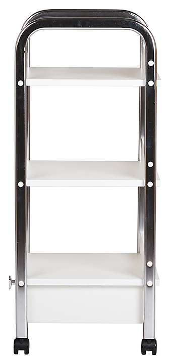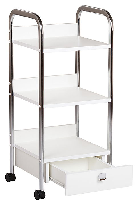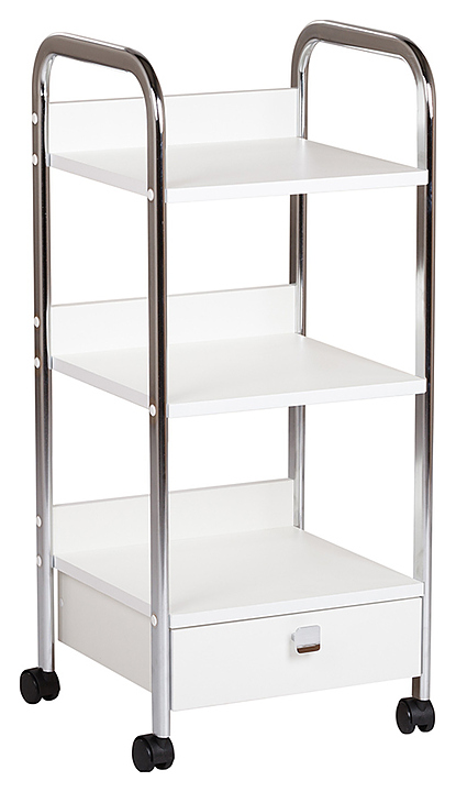 Косметологическая тележка PANDA Ионто V предназначена для хранения косметических средств, рабочих инструментов, приборов и расходных материалов в парикмахерских, барбершопах, салонах красоты и косметологических центрах. Модель оснащена открытыми полками, выдвижным ящиком и устойчивыми ножками на колесах. Каркас тележки изготовлен из металла, полки и ящик - из ЛДСП. Особенности: