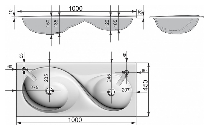 Раковина RAVAL Hotte 100 выполнена в стиле модерн с легкостью впишется в интерьер любой ванной комнаты. Прямоугольная форма способствует комфорту использования и монтажа. Накладная конструкция предусматривает установку на специальную столешницу или тумбу. Изделие выполнено из искусственного мрамора, который отличается простым уходом, долговечностью и красотой. Раковина используется вместе с тумбой Raval Hotte 100 Смеситель в комплект поставки не входит и приобретается отдельно. Особенности: