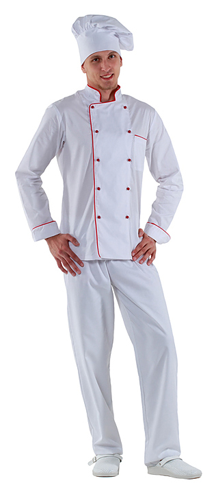 Куртка шеф-повара мужская Клен 00002, р.50, белая, красный кант