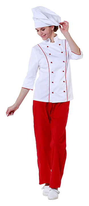 Куртка шеф-повара женская Клен 00016, р.62, белая, красный кант