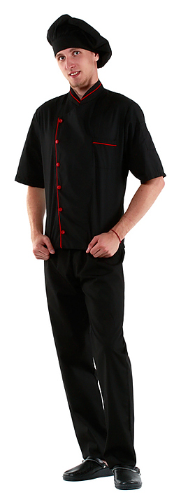 Куртка шеф-повара Клен 00003 используется поварами на предприятиях общественного питания и торговли. Модель оснащена застежкой на кнопках и карманом, декорирована цветным кантом. Изделие сшито из материала ТиСи, состоящего на 65% из полиэстера, на 35% из хлопка. Куртка может использоваться вместе с универсальными брюками и сабо. Дополнительные характеристики: