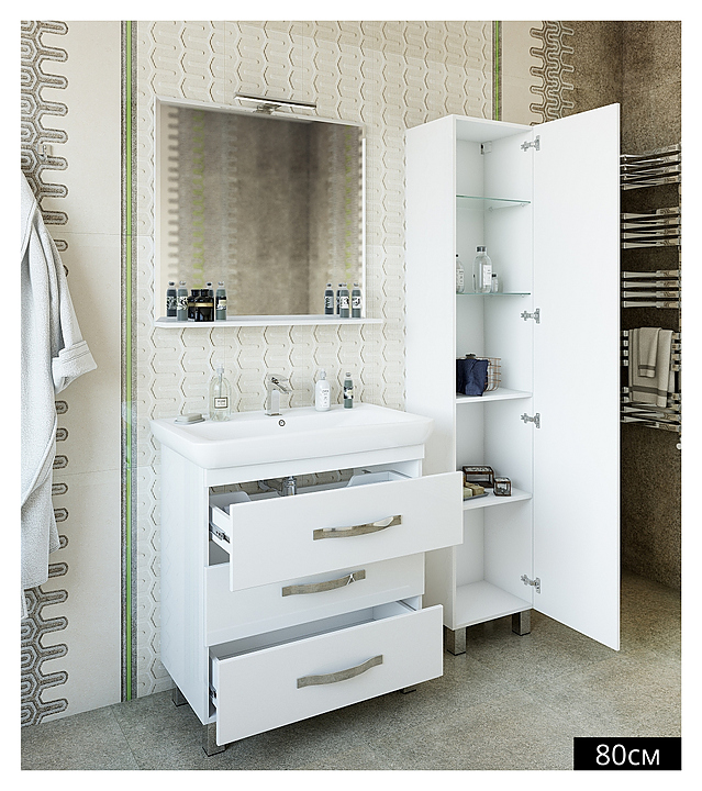 Гарнитур Sanflor Одри 2 80 см, 3 предмета, с напольной тумбой, белый