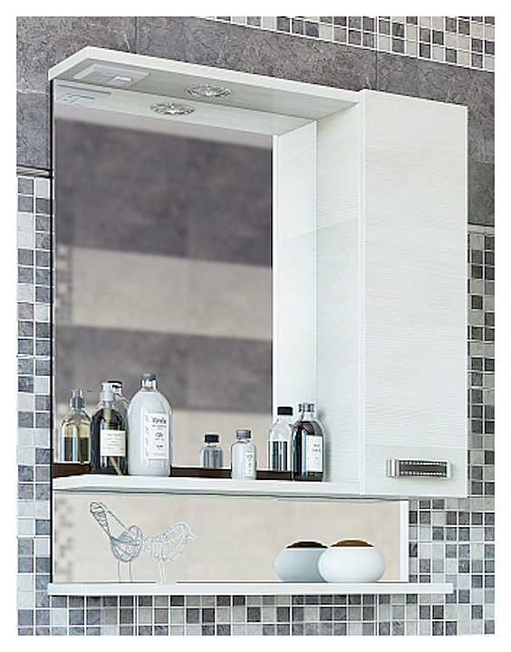 Зеркало Sanflor Техас выполнено в современном стиле. Благодар функциональности и эргономичным формам мебель станет украшением любой ванной комнаты. Модель оснащена 1 шкафчиком, 2 открытыми полочками и подсветкой. Каркас выполнен из влагостойкой ЛДСП с эмалевым покрытием. Зеркало является частью гарнитура для ванной комнаты Техас. Особенности: