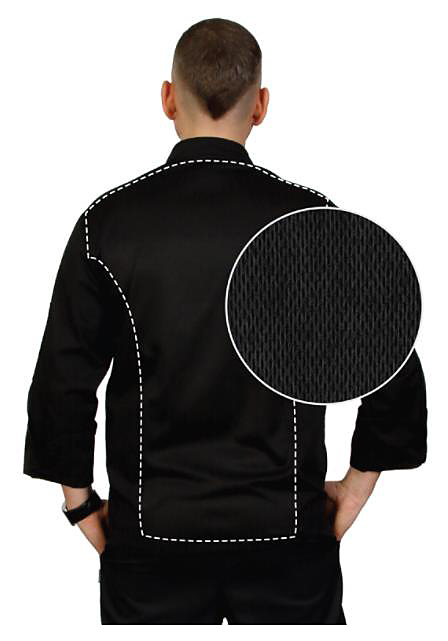 Куртка шеф-повара Клен 00012 Премиум используется поварами на предприятиях общественного питания и торговли. Модель оснащена застежкой на кнопках, сетчатой вставкой на спинке и манжетами на рукавах, декорирована цветным кантом. Изделие сшито из материала, состоящего на 35% из хлопка, на 65% из полиэстера. Фурнитура выполнена из нержавеющей стали, внутренние кнопки - никелированные. Куртка может использоваться вместе с универсальными брюками и сабо. Особенности: