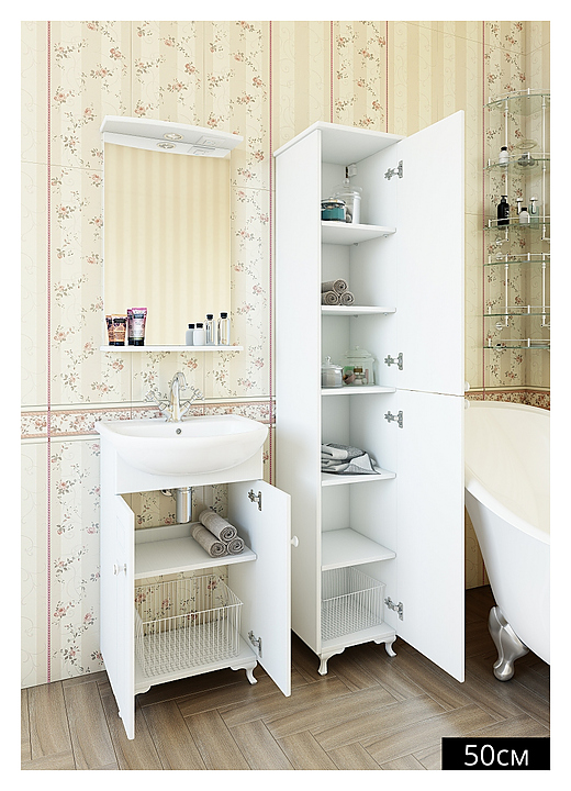 Шкаф-пенал Sanflor Софи выполнен в классическом стиле. Благодаря плавным линиям и изысканному стилю мебель станет украшением любой ванной комнаты. Модель оснащена 2 дверцами и 6 полками. Корпус мебели выполнен из влагостойкой ЛДСП. Шкаф-пенал является частью гарнитура для ванной комнаты Софи. Особенности: