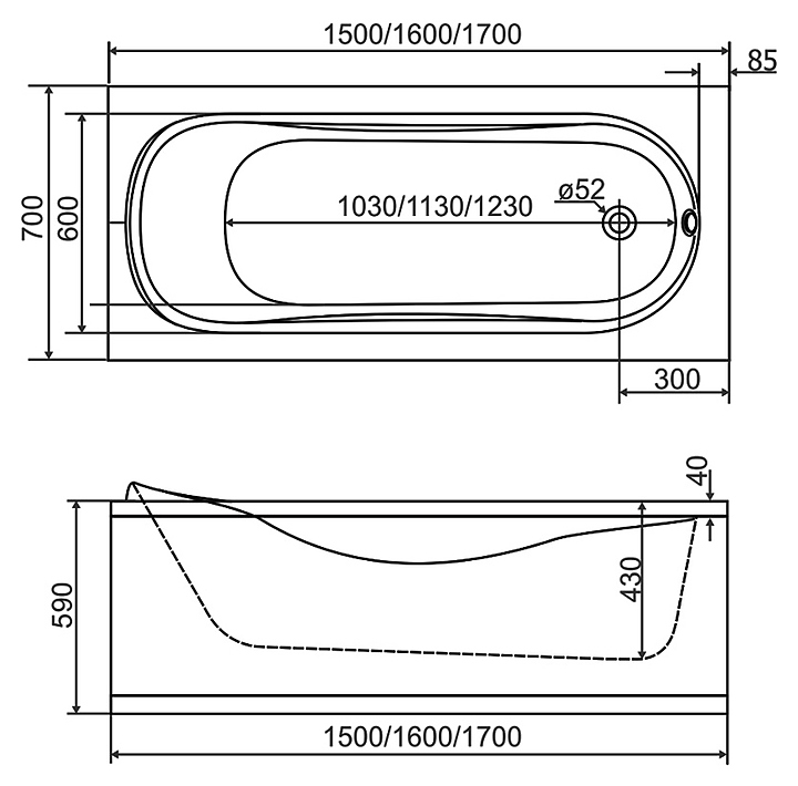 Ванна BYON AGESTA 160х70 см, с каркасом и лицевой панелью, акрил