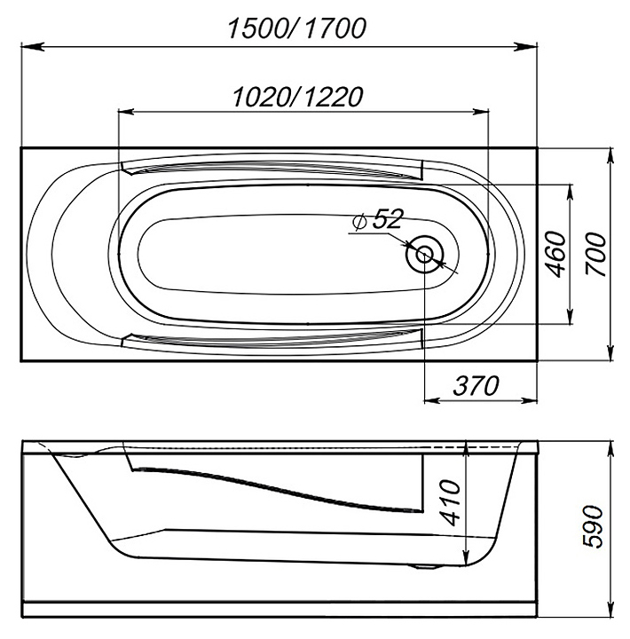 Ванна BYON VILBY 170х70 см, с каркасом и лицевой панелью, акрил