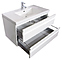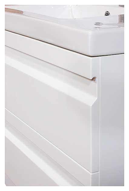 Тумба Sanvit Тема 90 выполнена в современном стиле. Благодаря подвесной конструкции изделие не занимает много места и обеспечивает легкую уборку в ванной комнате. Модель оснащена двумя выдвижными ящиками с функцией полного выдвижения и плавного, бесшумного закрывания и интегрированные в фасад ручки. Корпус изделия выполнен из влагостойкой МДФ, окрашенной белой глянцевой краской, которая обеспечивает изделию привлекательный внешний вид, а также износостойкость и долговечность. Внимание! Тумба приобретается только в комплекте с раковиной Sanvit 9090d, а также может использоваться в составе гарнитура с пеналом Тема ptemaR, зеркалами серий Кубэ, Армония и Панорама. Особенности:
