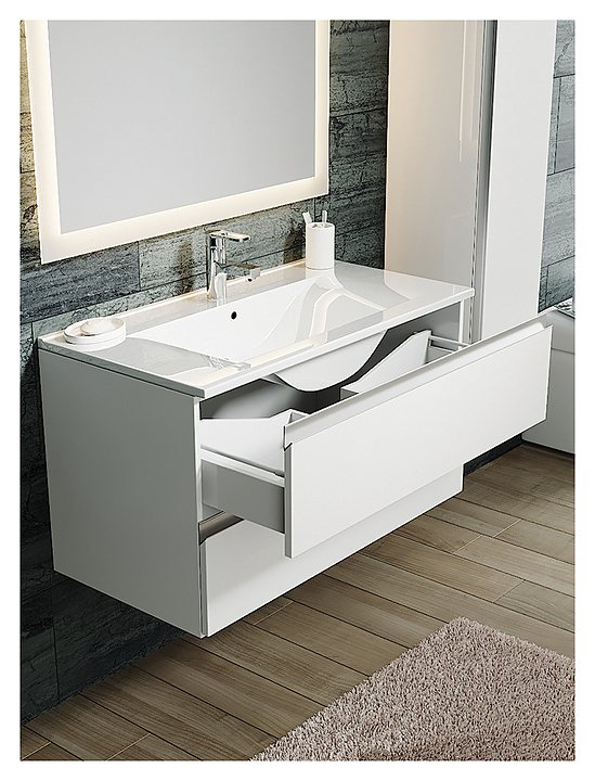 Тумба Sanvit Авеню-2 70 выполнена в современном стиле. Благодаря подвесной конструкции изделие не занимает много места и обеспечивает легкую уборку в ванной комнате. Модель оснащена двумя выдвижными ящиками с функцией полного выдвижения, плавного и бесшумного закрывания и системой разделения внутреннего и подсифонного пространства. Корпус выполнен из влагостойкой МДФ в пленке ПВХ белого цвета, которая обеспечивает изделию привлекательный внешний вид, износостойкость и долговечность. Тумба приобретается только в комплекте с раковиной Sanvit 9070 D. Смеситель в комплект поставки не входит и приобретается отдельно. Дополнительные характеристики: