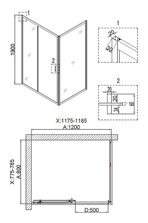 Уголок душевой Niagara NG-6812-08 BLACK 120х80х190 см