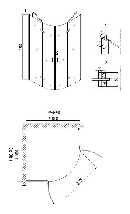 Уголок душевой Niagara NG-6816-08 BLACK 100х100х190 см