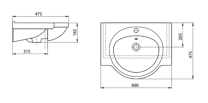 Раковина СаНта Сатурн 60 60х47,5 см, санфаянс
