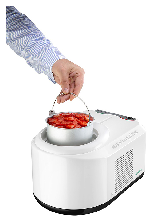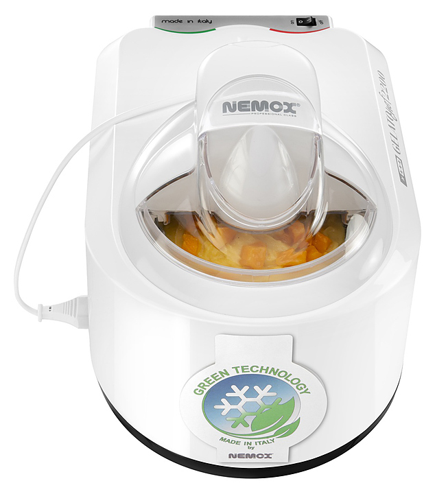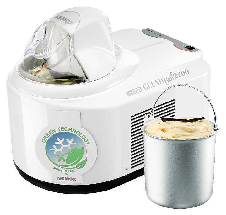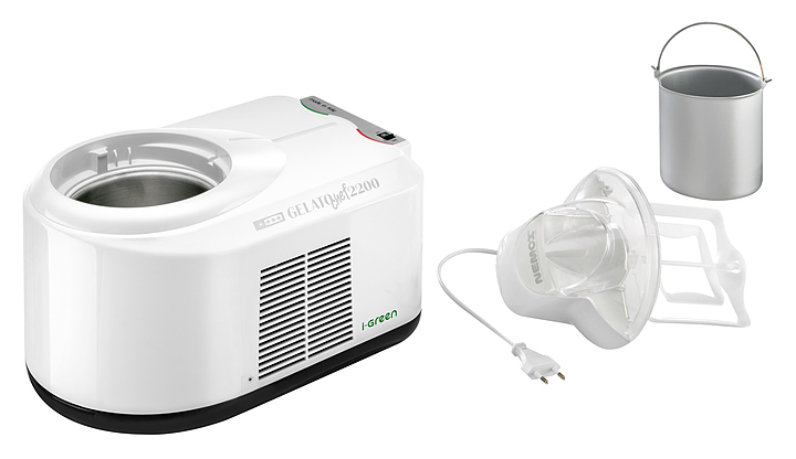 Фризер для мороженого Nemox i-Green Gelato Chef 2200 используется в частных домах и квартирах для приготовления мороженого, сорбета, замороженного йогурта и других холодных десертов. Модель оснащена асинхронным двигателем, фиксированной и съемной емкостями, лопастью для перемешивания, адаптированной к работе в обеих емкостях. Корпус выполнен из ABS-пластика, фиксированная емкость - из нержавеющей стали, съемная емкость - из алюминия, лопасть - из пластика. В комплект поставки входит лопатка, мерный стаканчик и сборник рецептов. Особенности: