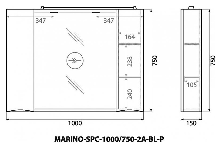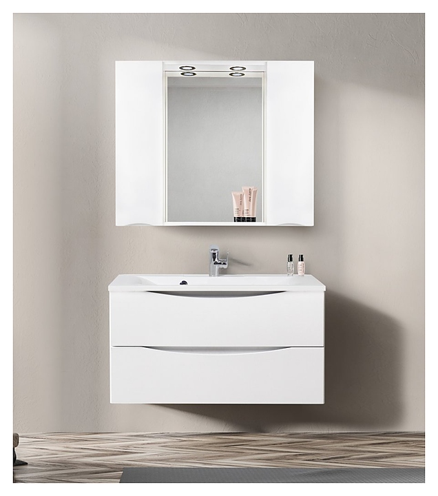 Шкаф зеркальный BelBagno MARINO-SPC-1000/750-2A-BL-P с подсветкой, белый глянцевый